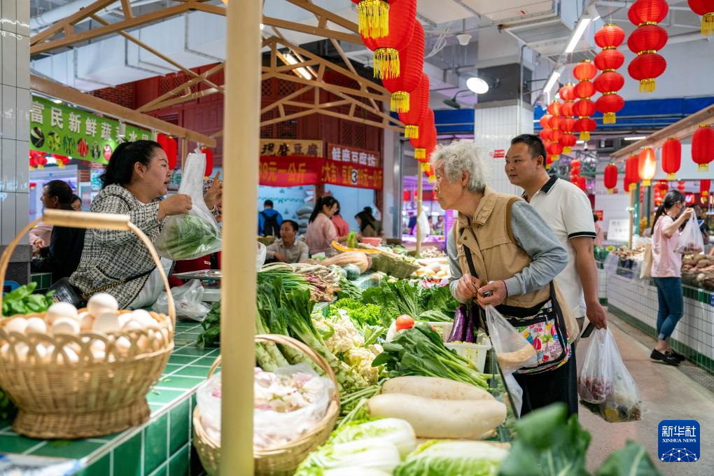 4月27日,市民在昆明市滇池路篆新滇池菜市买菜。