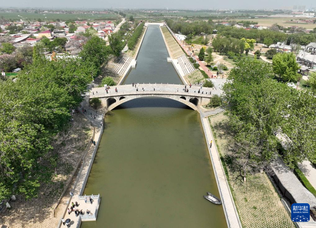 这是赵州桥及周边村庄(4月24日摄,无人机照片)。