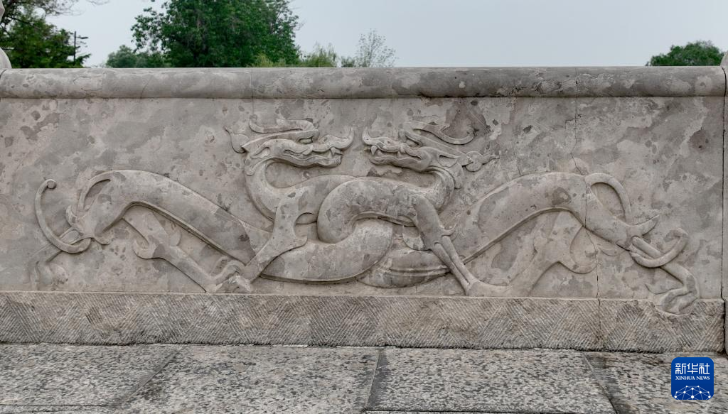 赵州桥石栏板上的雕刻图案(资料照片)。
