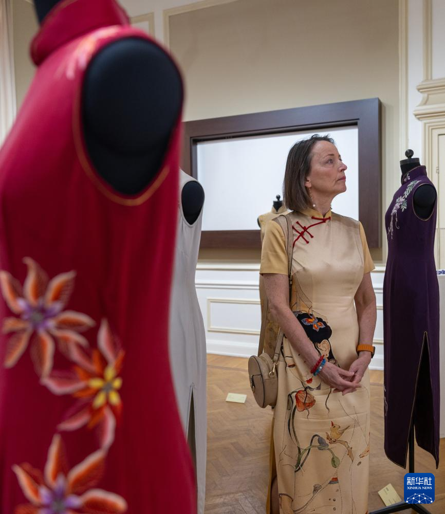 来自罗马尼亚的伊万娜·斯克埃什泰亚努在参观展览后表示:“我之前对20世纪初期的上海风貌和历史不太了解,这次旗袍展让我有机会近距离欣赏旗袍之美,更深入地了解上海。这些旗袍非常精美,将传统与现代结合在一起,能看到制作者一针一线中的巧思。这是一次中欧之间的文化交流,能让欧洲人看到中国文化的不同方面。”