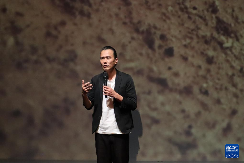 5月23日,云门舞集艺术总监郑宗龙在“春斗2024”彩排记者会现场介绍作品《身土》。新华社记者 齐菲 摄