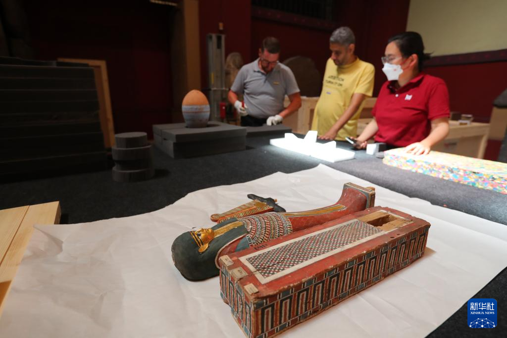 5月23日,在位于埃及首都开罗的埃及国家博物馆,工作人员对打包文物进行检查。