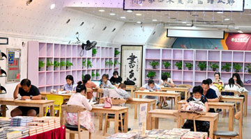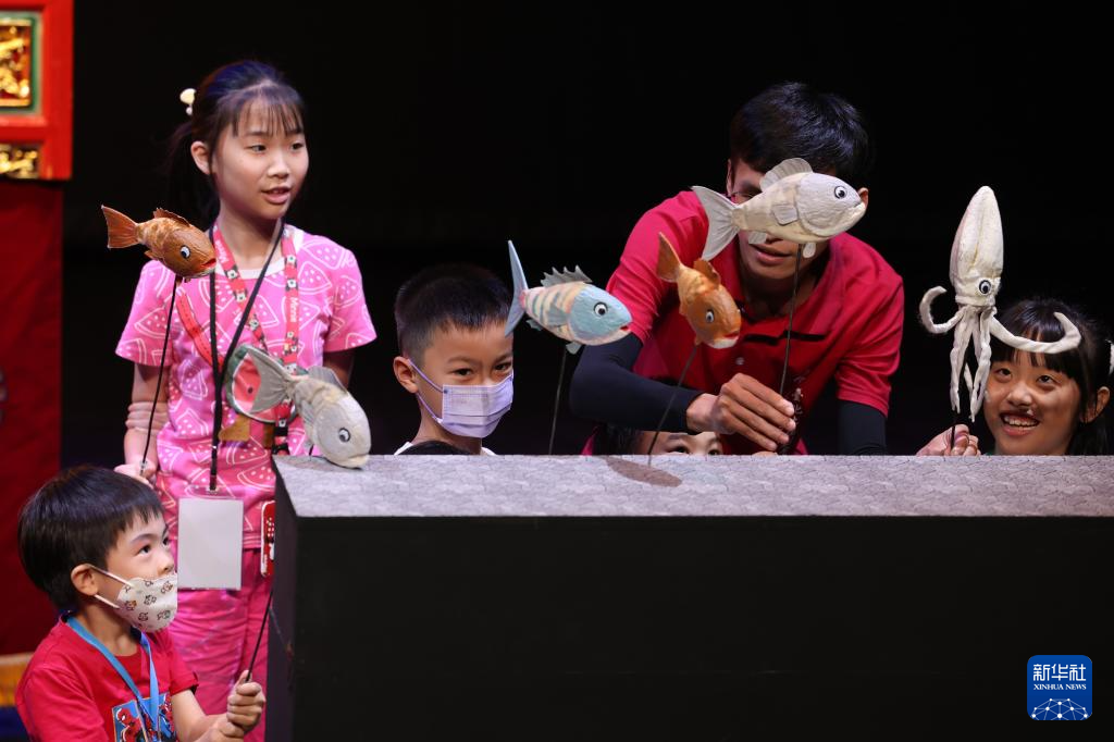7月10日拍摄的风神宝宝儿童剧团的现场表演。新华社发
