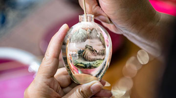 内画是我国特有的传统工艺。画师把特制的画笔,伸入狭窄的瓶口反向绘画,将大千世界镶嵌于方寸之间。“滇派内画”是现代内画技艺中一种独具云南风情的派别。