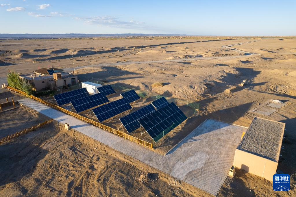 这是张吉全和闻春瑜夫妇工作生活的汉长城文物保护管理用房(7月16日摄,无人机照片)。