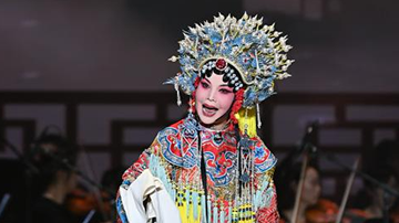 8月17日,在巴西首都巴西利亚,来自浙江婺剧艺术研究院的演员在沙滩艺术节中国日活动上表演。