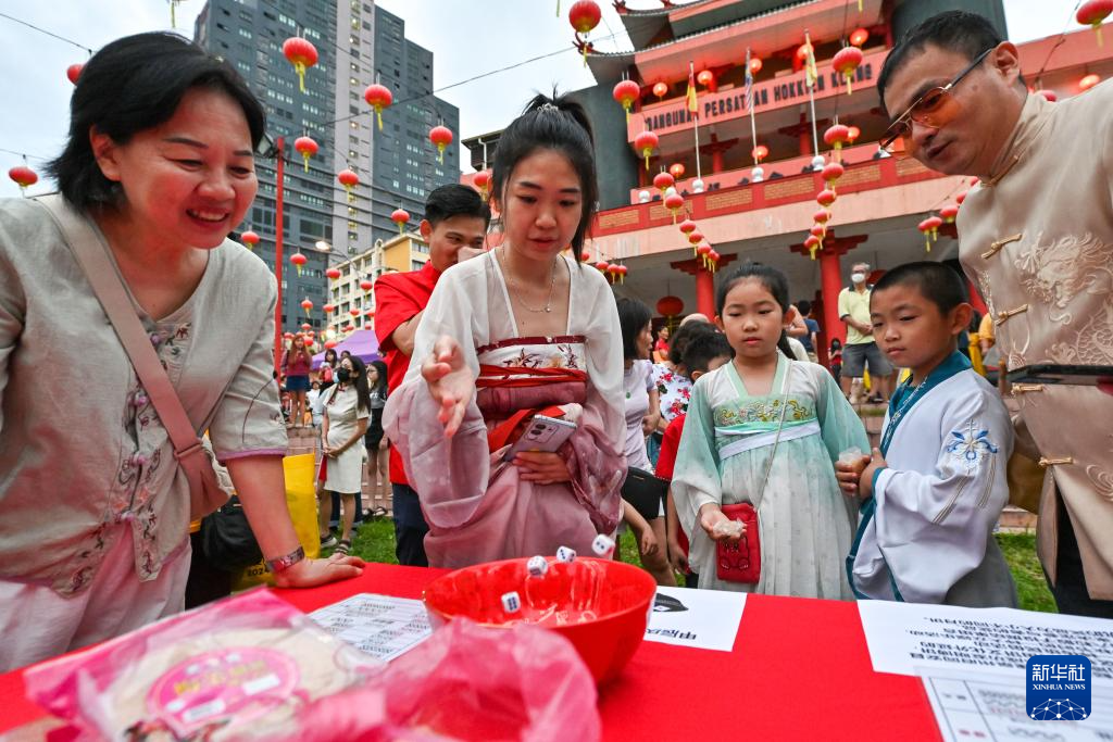 2023年9月27日,在马来西亚马六甲州丹绒吉宁举办的中秋晚会上,人们参加博饼活动(资料照片)。