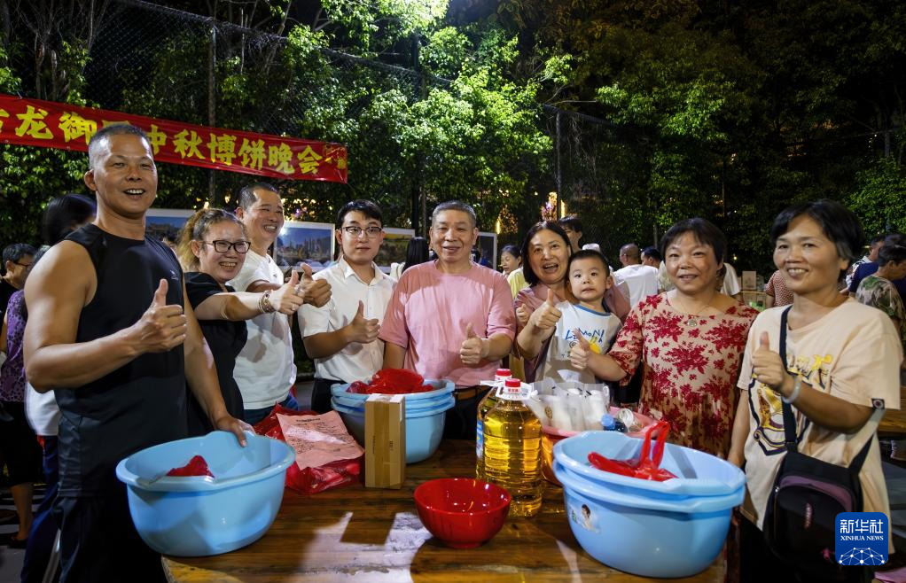 9月14日,在福建厦门一小区内,老少居民一起参加博饼活动。