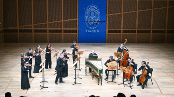 10月13日,美国茱莉亚415古乐团的14名师生在天津茱莉亚学院举行音乐会“一场音乐的盛宴:巴洛克协奏曲与舞曲”,这是美国茱莉亚415古乐团首次来华举行音乐演出。乐团成员还将在天津茱莉亚学院开展驻院讲学,举办工作坊、研讨会、联合排练等学术交流活动。未来一周,该乐团师生还将在北京、南京、苏州、上海4个城市开启巡演演出。