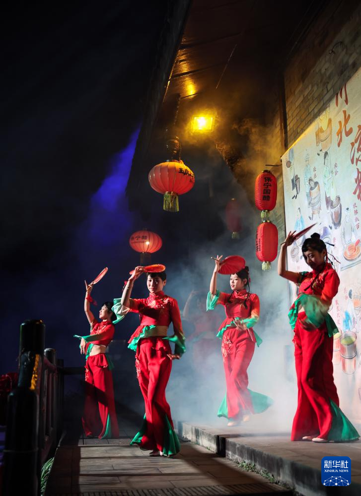 11月5日拍摄的实景演出《蜀道盛世》中的“亮花鞋”。