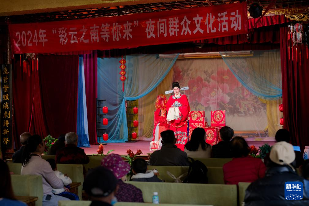 12月8日,观众在官渡古镇“古渡梨园”观看滇剧演出。