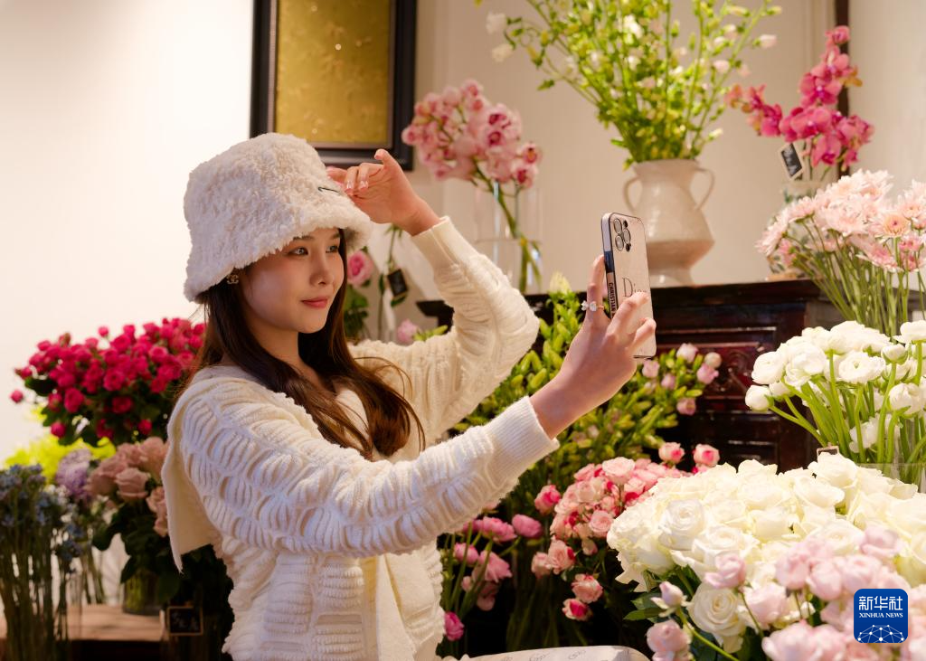 12月8日,游客在官渡古镇“古渡梨园”体验滇剧表演。