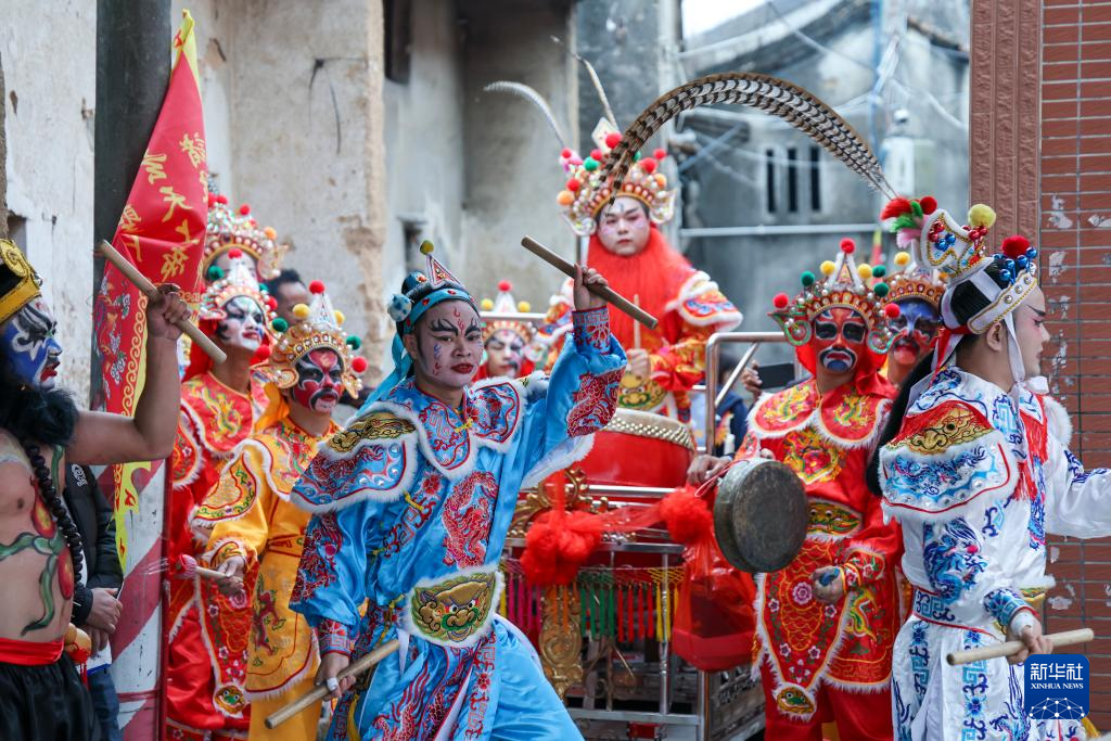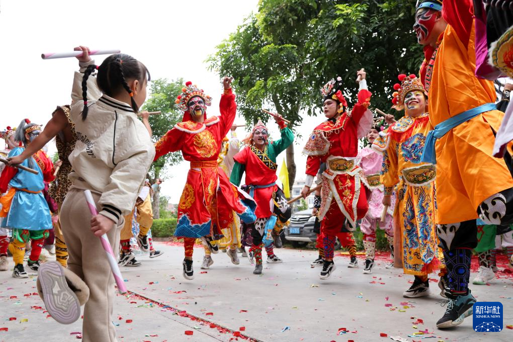 12月9日,广东省汕头市潮阳区贵屿镇玉窖村举办民俗活动,5岁女童庄恩琪手持英歌槌,跟随鼓点节奏与当地的英歌队员一同起舞,动作有力且充满韵律,赢得了在场观众阵阵掌声。