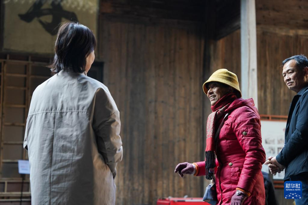 12月18日,胡晓雯(右一)在西递村敬爱堂中为游客讲解。