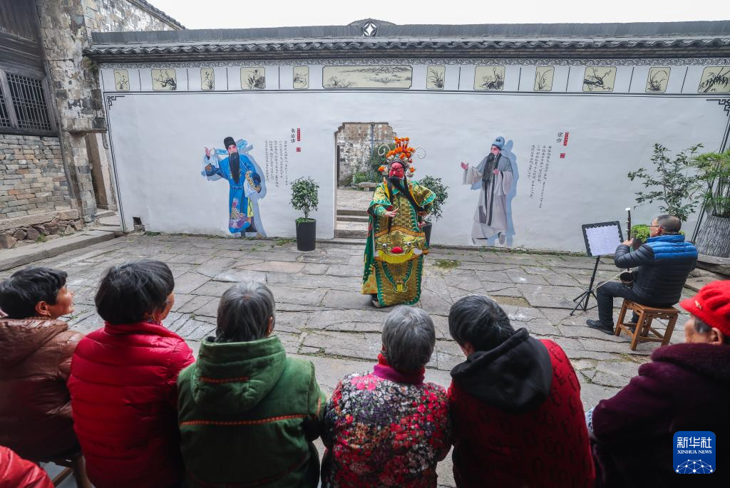临近春节,金华市金东区澧浦镇郑店村婺剧坐唱班的演员在村文化礼堂为村民开展迎新春婺剧系列表演,吸引了不少村民前来观看。