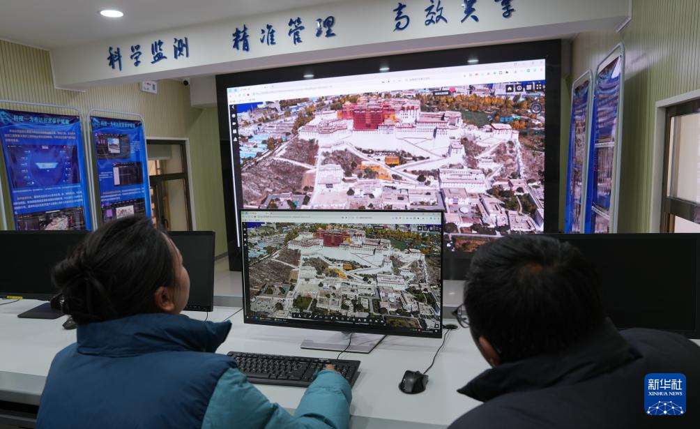 12月4日,布达拉宫监测中心的工作人员在查看布达拉宫三维图像。