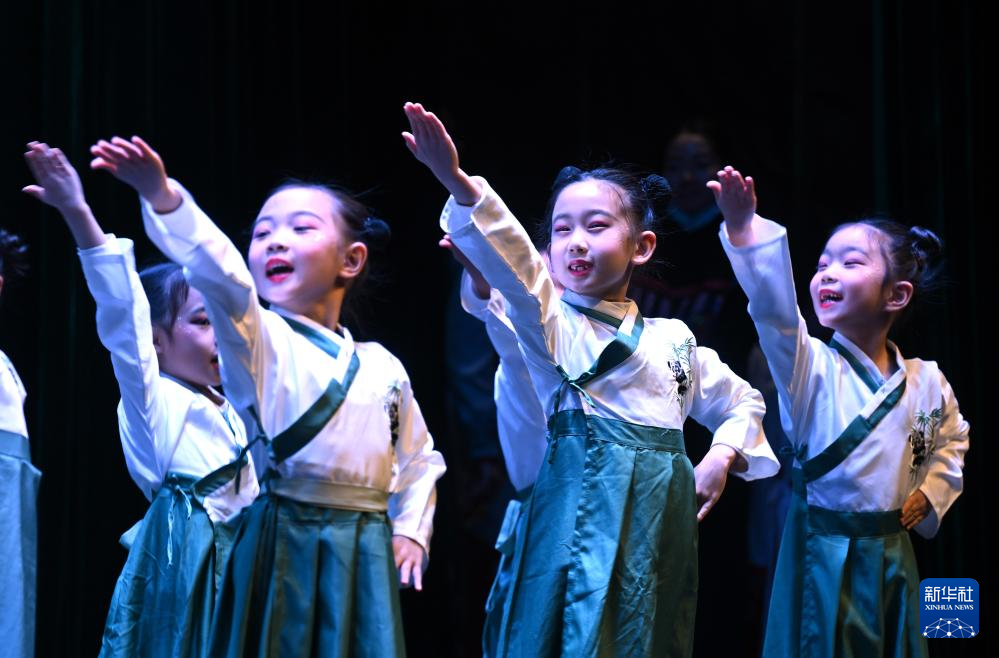 1月10日,古诗社团学生在活动上表演《古韵·童声》。