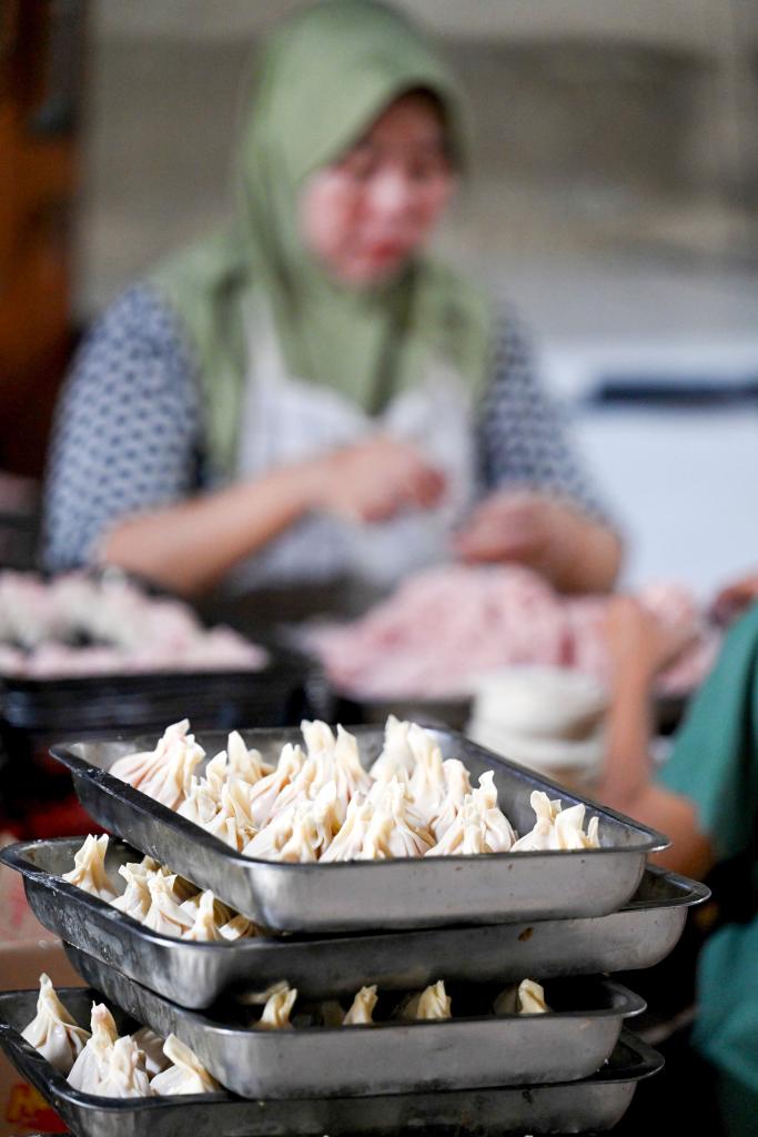 1月14日,在印度尼西亚南唐格朗,工人在一家点心作坊制作点心。