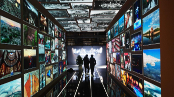 1月18日晚,市民在浙江省湖州市德清县上渚山奇幻新春灯会上赏灯(无人机照片)。