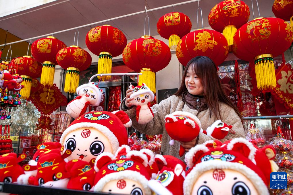 1月19日,在河南省焦作市博爱县柏山镇义沟村,村民在选购新年饰品。