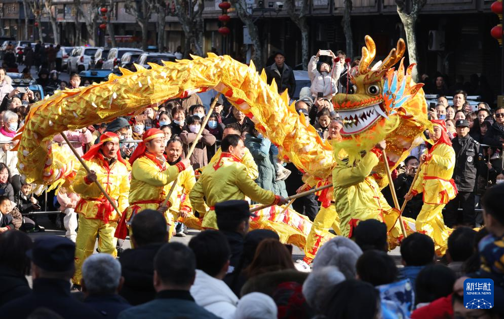 2月9日,民间艺人在浙江省湖州市德清县乾元镇进行舞龙表演。