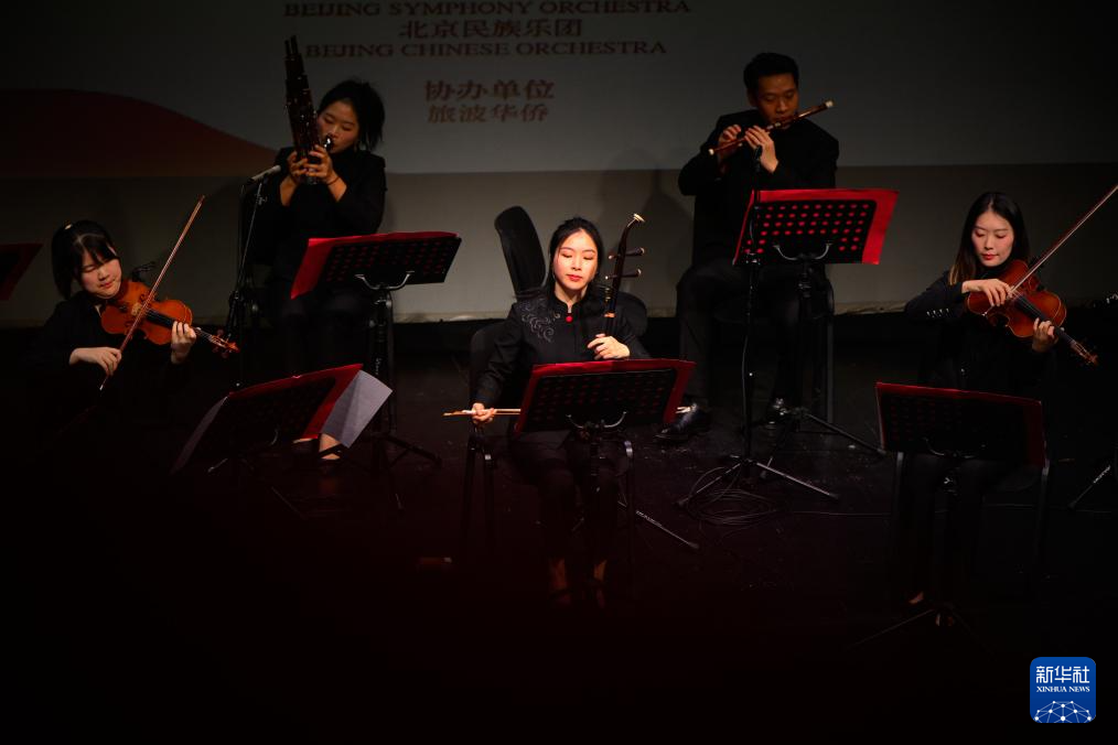 2月11日,来自北京交响乐团和北京民族乐团的演奏家在波兰首都华沙举办的新春音乐会上演出。