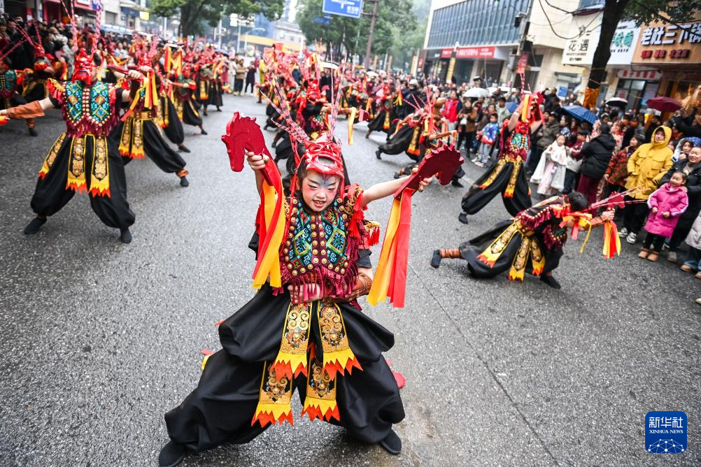 2月12日,在张家界市永定区,演员在表演民俗节目。