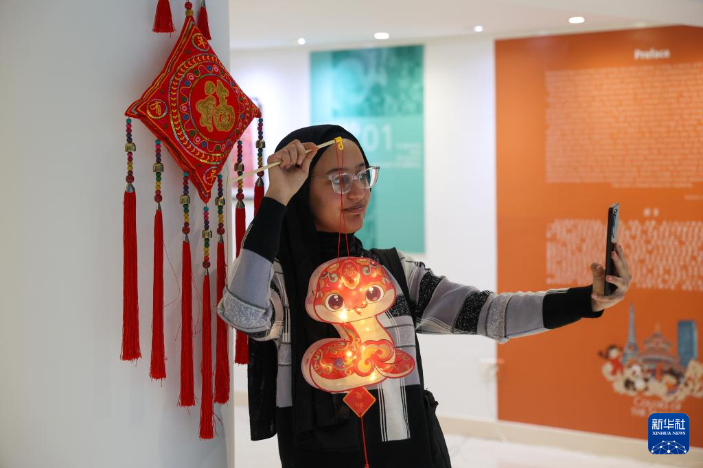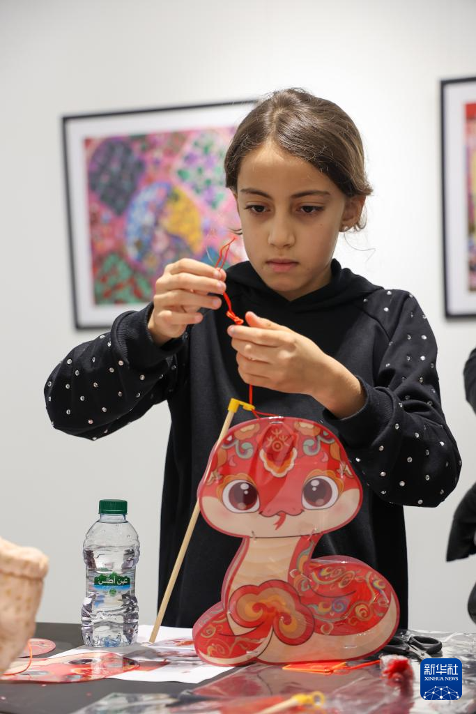 当日,元宵节庆祝活动在拉巴特中国文化中心举行。摩洛哥民众体验蛇形灯笼制作,庆祝元宵节。