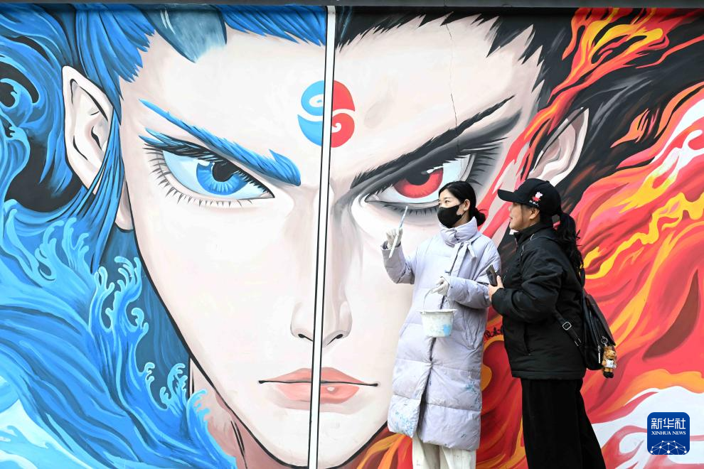 哪吒主题墙绘扮靓石家庄-新华网