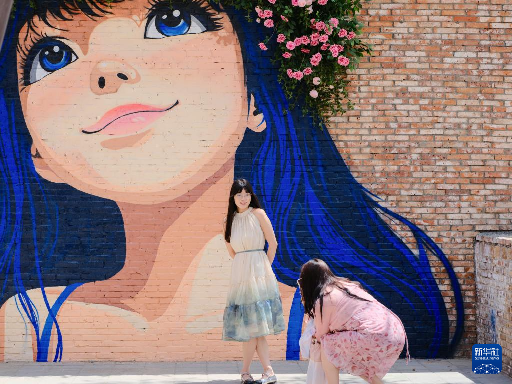 6月21日,游客在“包棉1958”主题文化街区打卡拍照。