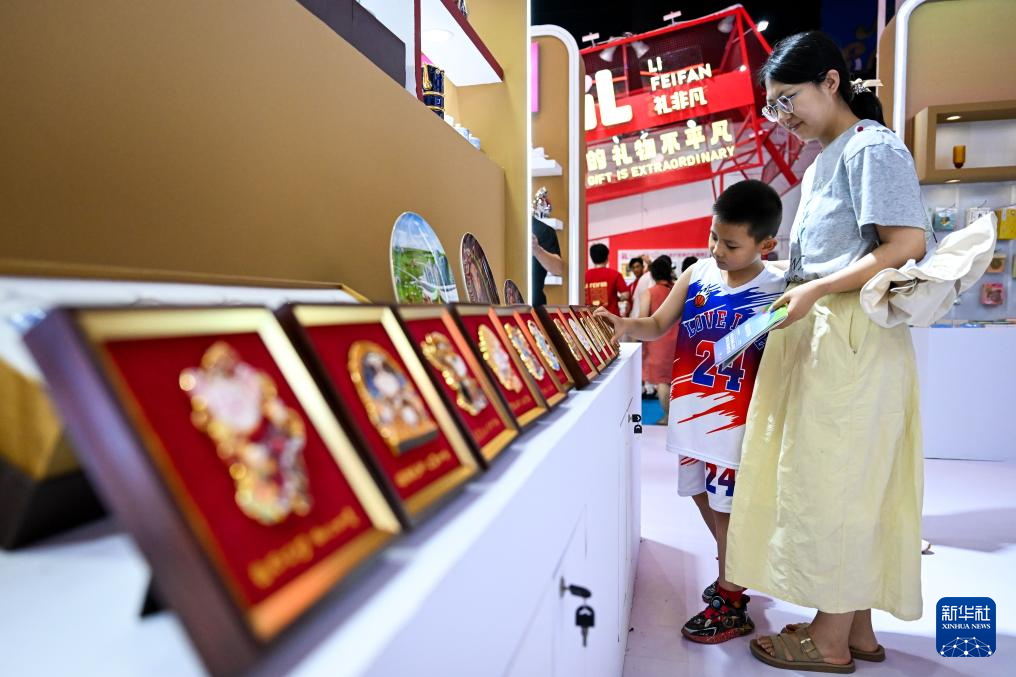 这是7月17日在第九届内蒙古自治区文化产业博览交易会现场拍摄的文创产品。