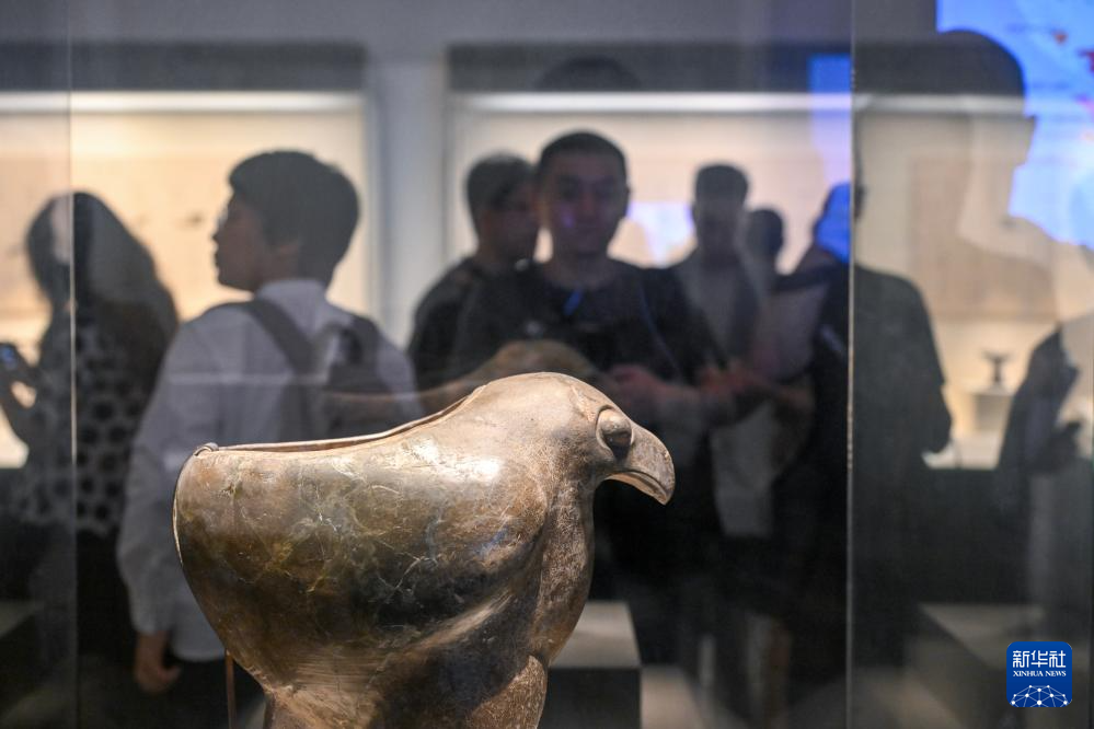 7月21日,人们在国博参观仰韶文化鹰形陶鼎。