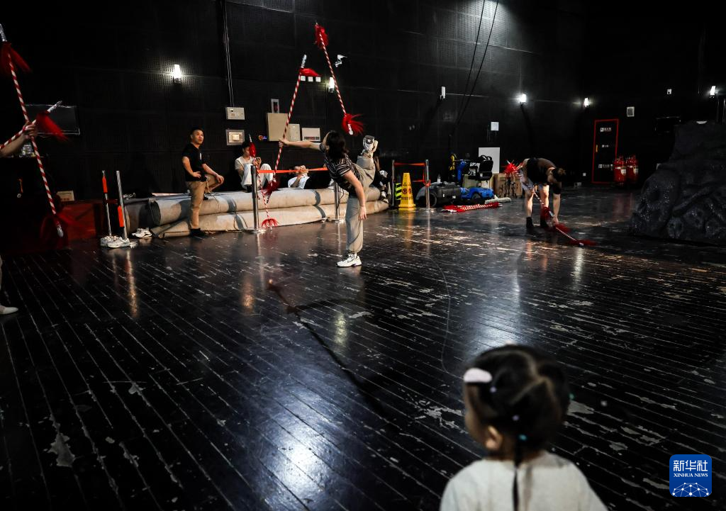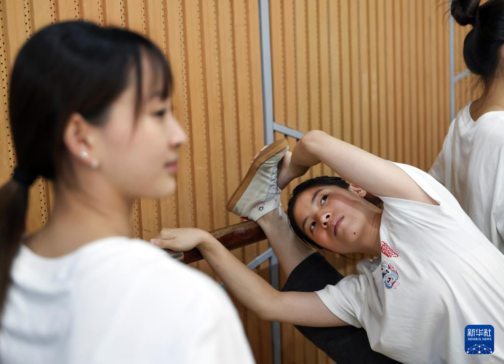 10月12日,浙江婺剧艺术研究院的演员在剧院后台练习基本功。