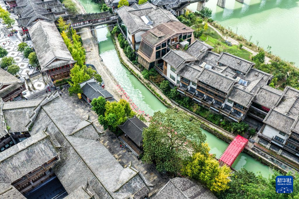 这是10月30日拍摄的濯水古镇景色(无人机照片)。