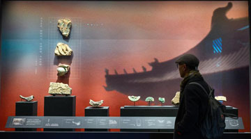 游客在四川省广汉市三星堆博物馆参观青铜神树(10月30日摄)。