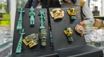 近年来,三星堆遗址重要考古发现成果陆续公布并展出,带动三星堆博物馆的文创产品设计销售热潮。一些文创产品取材于发掘出土的金面罩、青铜器等文物,受到人们的欢迎。