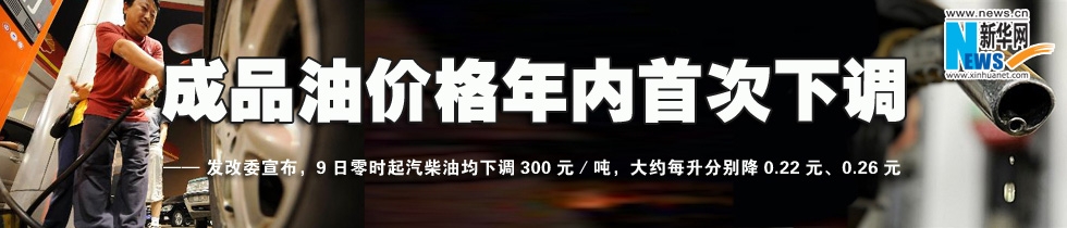 國家發展和改革委員會8日宣布,從9日零時起下調成品油最高零售價格,汽柴油均下調300元/噸,大約每升分別降0.22元、0.26元。 [詳細]