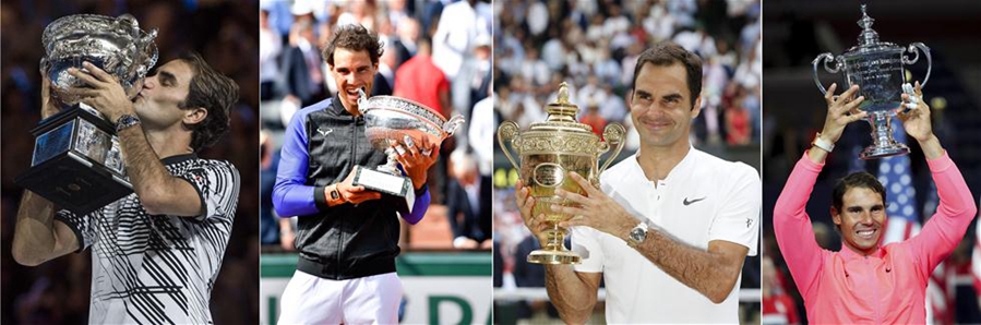 - 36-year-old Roger Federer and 31-year-old Rafael Nadal combined to sweep the men's singles titles at the four Grand Slam tournaments in 2017.