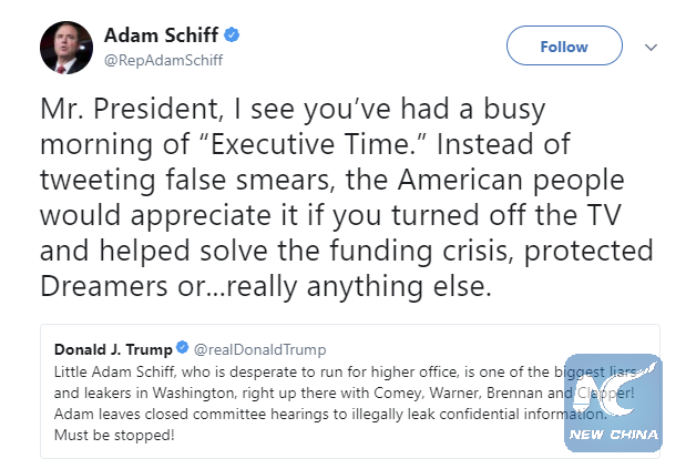 Adam Schiff tweets in response to Donald Trump's remarks.