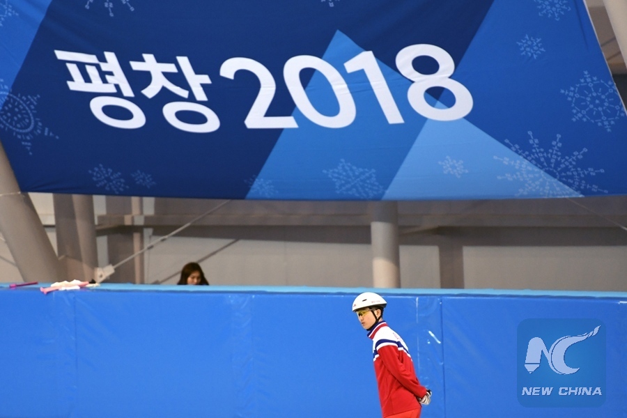 Jong Kwang Bom of the Democratic People's Republic of Korea (DPRK) practises at the Gangneung Yeongdong Short Track Training Venue in Gangneung, South Korea, Feb. 6, 2018. The 2018 PyeongChang Olympic Winter Games will kick off here on Feb. 9. (Xinhua/Ju Huanzong)