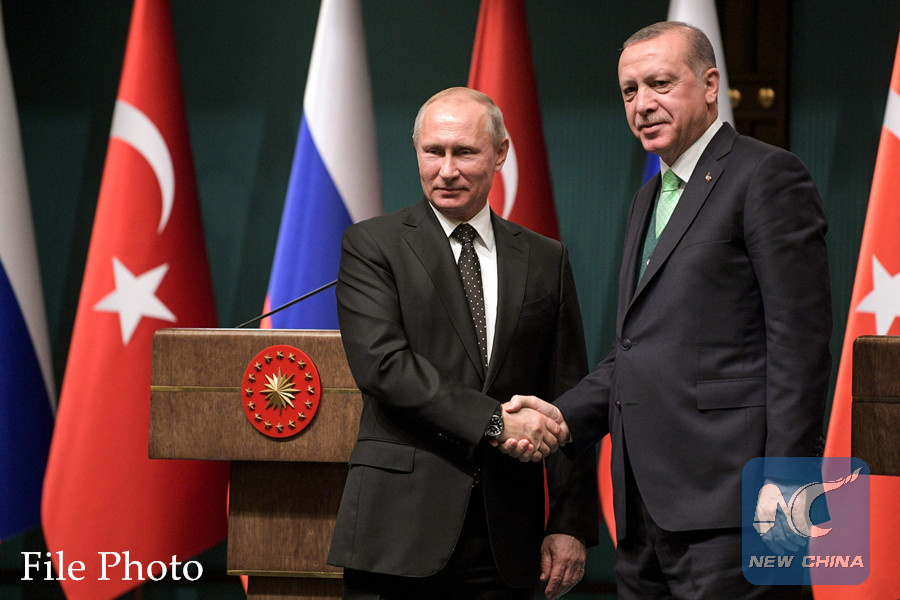 MOSCOW, Feb. 19 (Xinhua) -- Russian President Vladimir Putin and his Turkish counterpart Recep Tayyip Erdogan agreed to strengthen cooperation under the Astana agreements to promote the Syrian peace process, the Kremlin said Monday.
