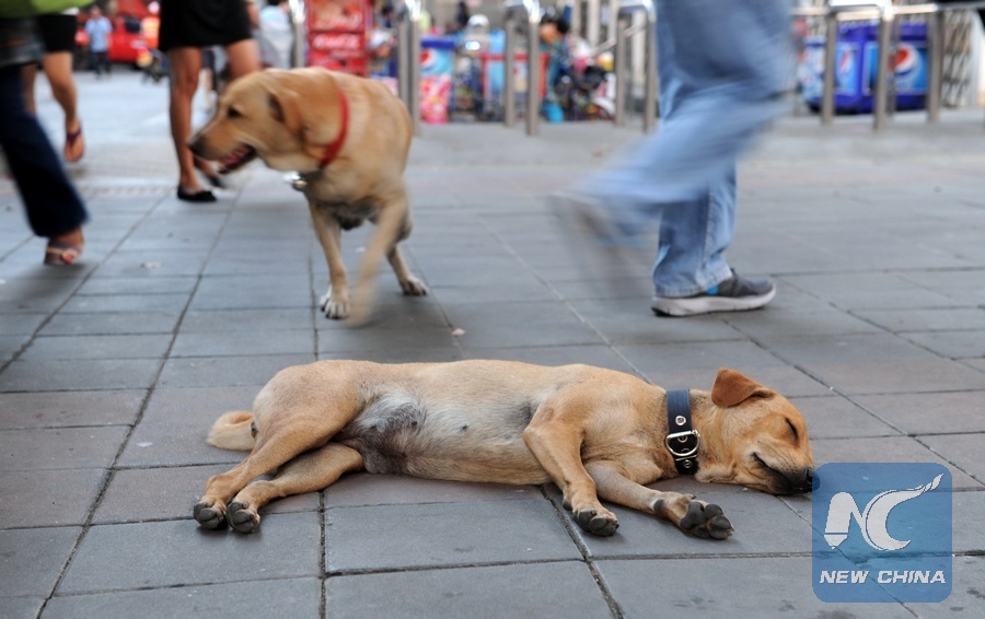 A street dog rests by the street side in Bangkok, capital of Thailand, March 7, 2013. (Xinhua/Gao Jianjun)