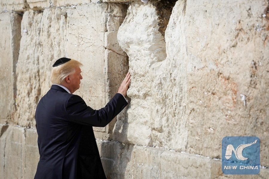 U.S. President Donald Trump visits the Western Wall in Jerusalem, May 22, 2017. (Xinhua/Nati Shochat-JINI)