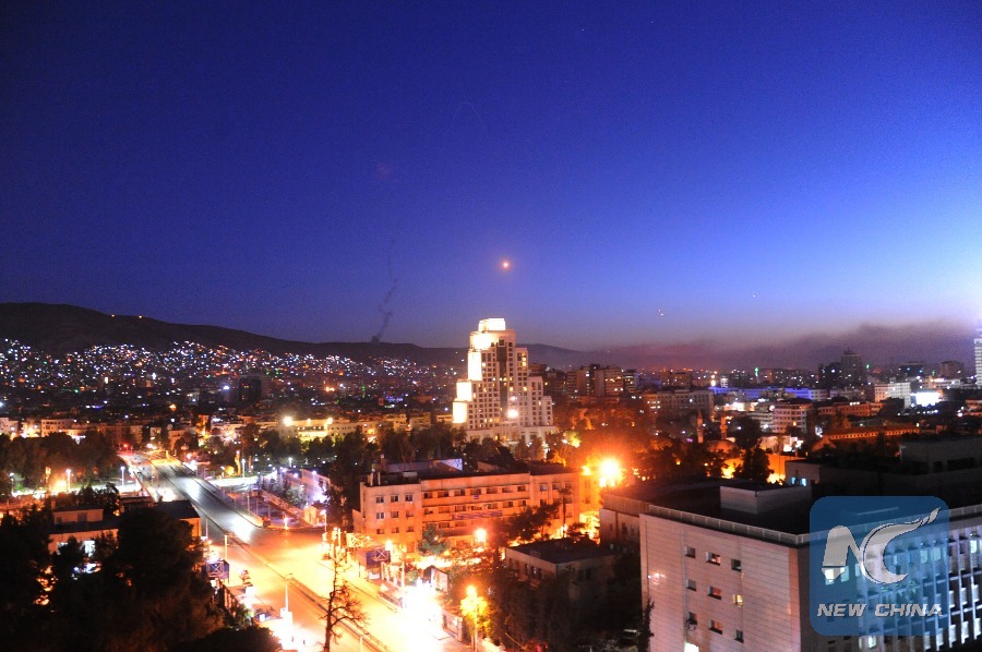 Loud explosions were heard in Damascus before daybreak, Xinhua reporters in the besieged city said. They saw plumes of smoke rising from areas in the capital while the missiles looked like red dots.