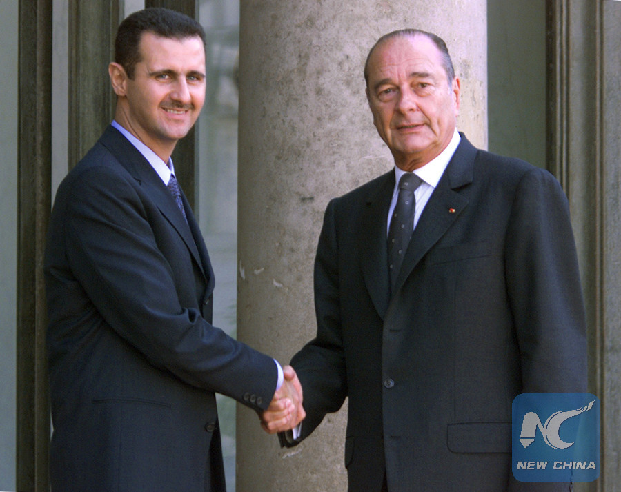 (File photo)In this file photo taken on June 25, 2001 Syrian President Bashar al-Assad (L) is greeted by French President Jacques Chirac before their meeting at the Elysee Palace in Paris. (AFP photo)