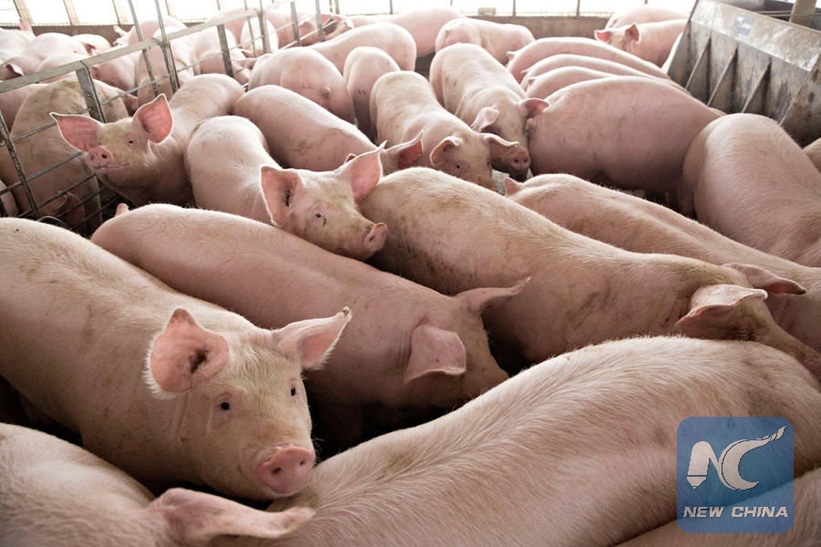 Pigs nearing market weight stand in a farm in Illinois, U.S., April 9, 2018. (Xinhua/REUTERS)