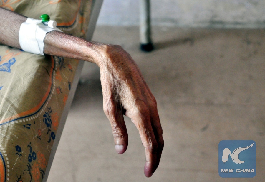File Photo: Photo taken on March 24, 2015 shows a hand of a tuberculosis patient at a government hospital on World Tuberculosis Day in Agartala, India. (Xinhua/Stringer)