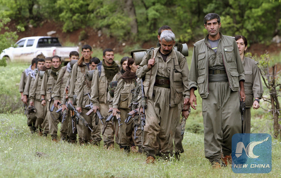 In this file photo taken on May 14, 2013, a group of armed Kurdish fighters from the Kurdistan Workers Party (PKK) enter northern Iraq in the Heror area, northeast of Dahuk, 430 kilometers northwest of Baghdad, Iraq. (AP photo)
