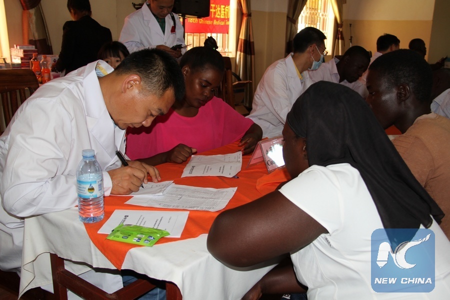 Chinese doctors attend to patients in Kayunga district, central Uganda, March 23, 2018.(Xinhua/Zhang Gaiping)