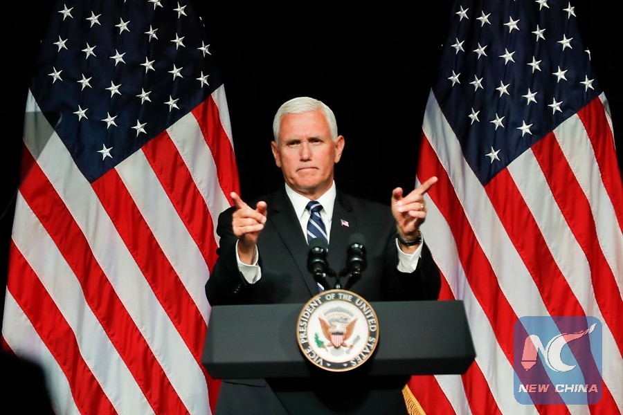 U.S. Vice President Mike Pence speaks during an announcement of the Trump Administration's plan to establish the U.S. Space Force by year 2020 at the Pentagon, Virginia, the United States on Aug. 9, 2018. (Xinhua/Ting Shen)
